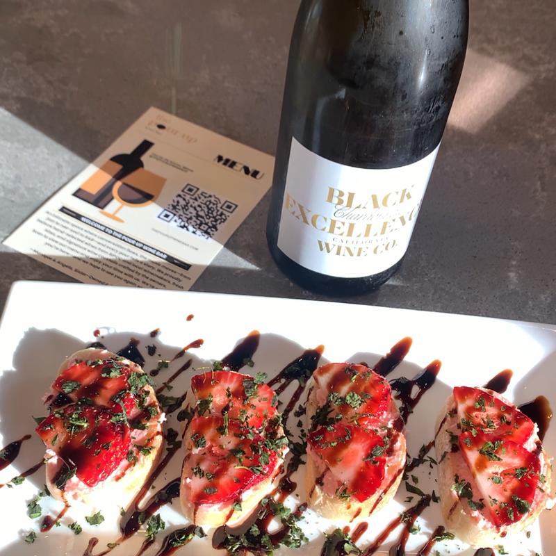 Sweet fresh strawberries, creamy goat cheese, and basil finished with a balsamic drizzle on warm flatbread. A perfect balance of sweet and savory.